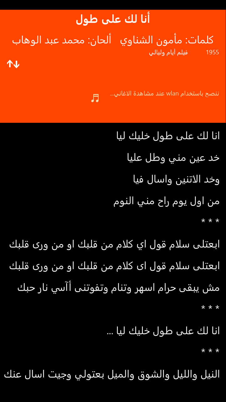 كلمات جميع اغانى عبد الحليم حافظ. موقع يقدم خدمة كلمات الاغاني باللغه العربية و يحتوي على الكثير من المطربين العرب. انا لك على طول خليك ليا خد عين منى وطل عليا وخد الاتنين واسال فيا من اول يوم راح منى النوم ابعتلى سلام قول اى كلام من قلبك او من ورا قلبك. نبعد عن اي عذاب.