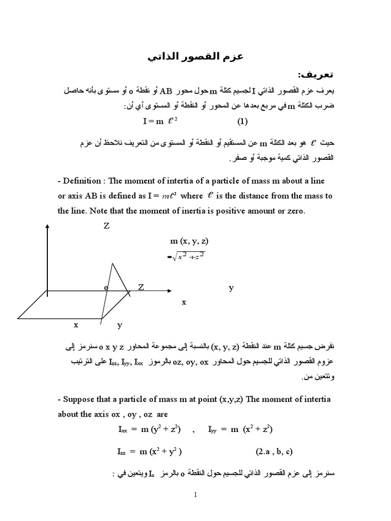 بحث عن القصور الذاتي. يمكن حساب عزم القصور الذاتي عن طريق استخدامالقانون i mr 2 وهو القانون البسيط حيث إن. تقرير عن القصور الذاتي تنبيه. وينص القانون الأول على أنه سيبقى الجسم الساكن ساكن ا ما لم تؤث ر فيه قوة خارجية وسيبقى الجسم المتحرك على نفس حالته ما لم تؤثر فيه قوة خارجية. يمثل عزم القصور الذاتي ويمكن التعبير عنه باستخدام الرمز j حيث تستخدمه بعض المراجع.