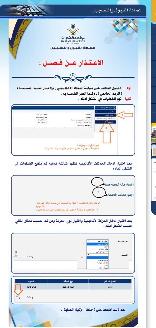 بوابة النظام الاكاديمي جامعة نجران. 4 اقر بأنه لم يسبق أن طوي قيدي من أي جامعة داخل المملكة أو خارجها لأسباب أكاديمية أو تأديبية. مركز جامعة المجمعة الدولي لتقنيات التأهيل والأطراف الاصطناعية. لايتوفر محتوى باللغة العربية. بوابة النظام الاكاديمي جامعة نجران إن جامعة نجران من الجامعات المميزة في السعودية كما إن الجامعة قامت بتوفير منصة إلكترونية من أجل أستفسار الطالب عن أي شيء يريده وهذه المنصة هي بوابة النظام الأكاديمي وتشمل.