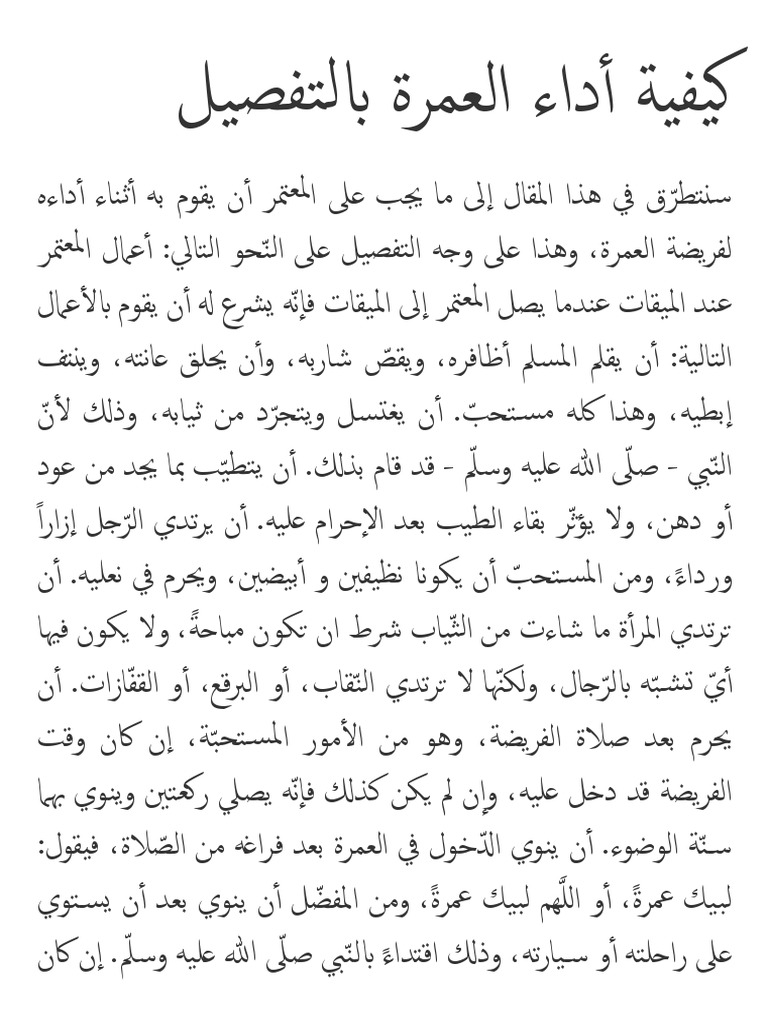 كيفية اداء العمرة pdf. فإن العمرة قد دخلت في الحج إلى يوم القيامة مقالة موقع الشيخ عبدالله بن حمود الفريح. و ل ل ه ع ل ى الن اس ح ج ال ب ي ت م ن. يبحث المسلمين بشغف عن كيفية أداء العمرة لكي يقوموا بأدائها بشكل سليم ويتقبلها المولى عز وجل والتي تعتمد على مجموعة من الخطوات والمناسك المتبعة منذ عهد الرسول صلى الله عليه وسلم. ومن جانبه اهتم أيضا بتقديم الإجابات الوافية عن الأسئلة التي تدور في أداء العبادة على وجهها الصحيح.