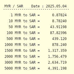 The page provides data about today s value of one ringgit in saudi riyals.